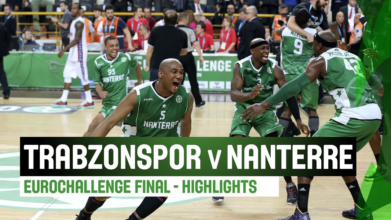 Difficile de passer à côté ce matin... Nanterre a remporté l'EuroChallenge hier au soir et ramène une Coupe d'Europe en France, 13 ans après la dernière remportée par le SLUC Nancy (Coupe Korac). Jusqu'à la dernière seconde cette finale aura été indécise avec un panier au buzzer de T.J. Campbell que les arbitres ont dû valider grâce à la vidéo. Voici les meilleurs moment du match face à Trabzonspor Medical Park... Enjoy !!
