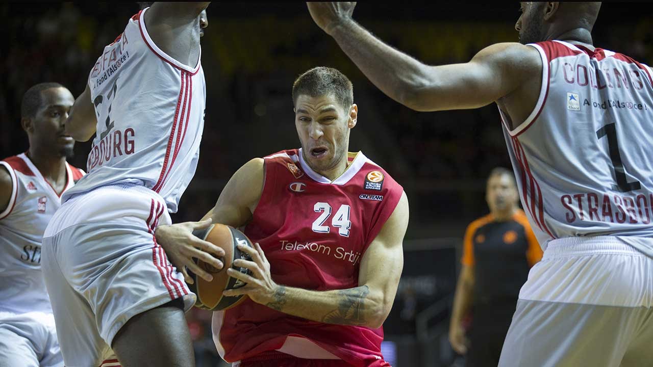 Après la belle victoire contre le Real Madrid lors de la dernière journée, Strasbourg veut enchaîner pour rester invaincu à domicile cependant l'Etoile Rouge de Belgrade ne compte pas venir en victime expiatoire. Dès les premières minutes, Belgrade prend les commandes grâce à un Quincy Miller incandescent qui met les 11 premiers points, les hommes de Vincent Collet n'arrivent pas à réagir notamment Kyle Weems qui rate tout ce qu'il entreprend offensivement. Collectivement la défense strasbourgeoise est complètement absente et encaisse sept paniers à 3 points, Strasbourg essaie de grignoter son retard mais toutes les possessions s'avèrent compliquées, seuls Jérémy Leloup et Vladimir Golubovic alimentent la marque mais l'écart dépasse les 10 points à la fin du premier quart-temps.