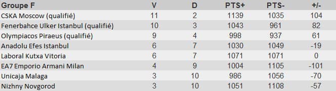 Dans ce groupe F il ne reste plus d’une place pour les quarts de finale et cela se jouera entre l’Anadolu et Vitoria.